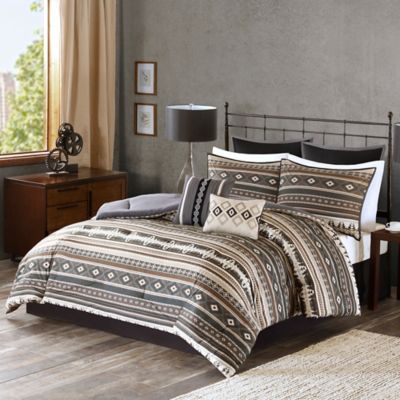 grey and brown bedding